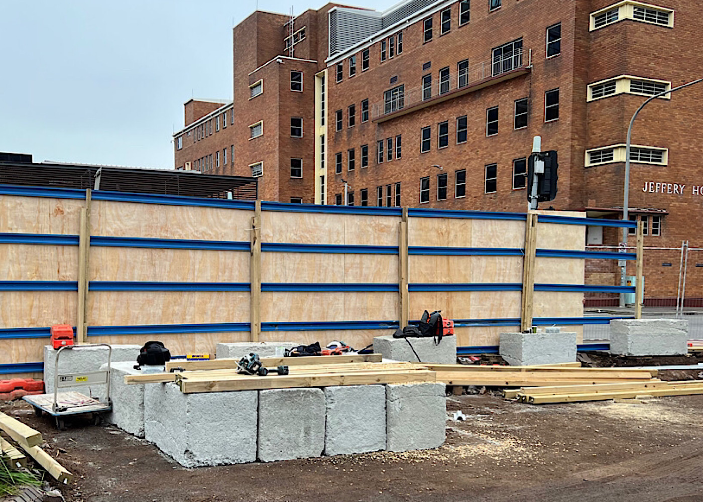 This job was built in 2022, the hoarding was built using 1 ton concrete blocks with posts, rails and plywood, the hoarding was engineered to protect the general public and passing traffic from the construction site, which had a deep car park excavation.